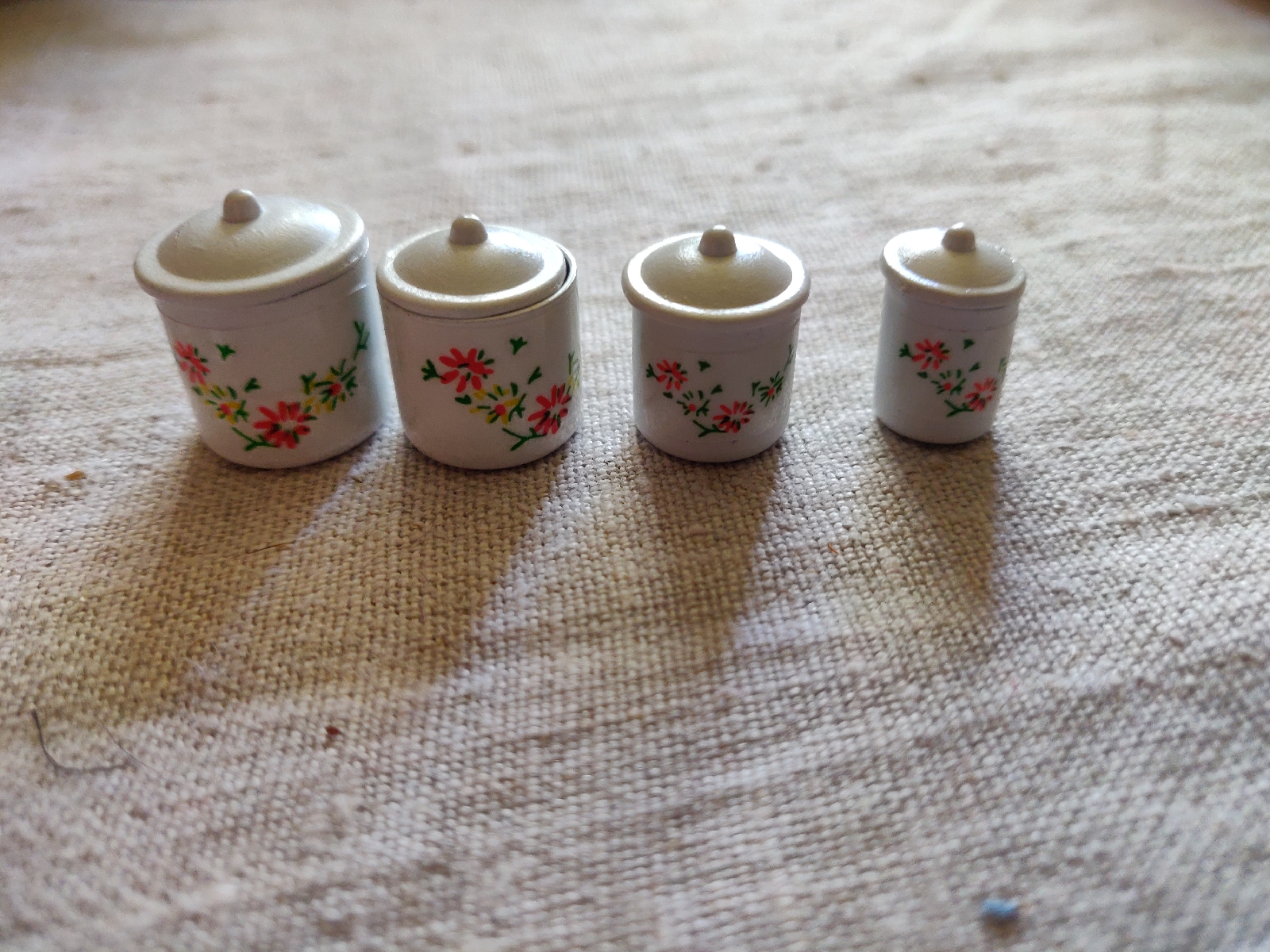 Pidän todella paljon peltipurkeista, joten ilman muuta niitä pitää olla myös pienessä maailmassa. Nämä tulevat Isontalon keittiöön.
